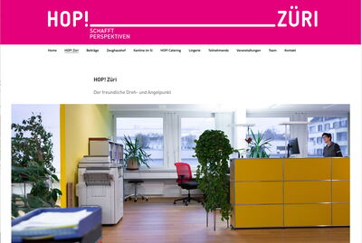 HOP! Züri ist ein Arbeitsintegrationsprogramm im Bereich Gastronomie und Hotellerie. Sein Ziel ist die Wiedereingliederung der Programmteilnehmenden in den ersten Arbeitsmarkt. Dafür werden Gruppeneinsatzplätze in eigenen Betrieben oder Einzeleinsatzplätze im ersten Arbeitsmarkt angeboten. HOP! Züri führt zwei Restaurants, ein Catering und eine Lingerie/Reinigung.