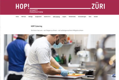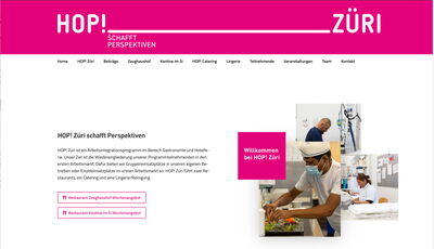 HOP! Züri ist ein Arbeitsintegrationsprogramm im Bereich Gastronomie und Hotellerie. Sein Ziel ist die Wiedereingliederung der Programmteilnehmenden in den ersten Arbeitsmarkt. Dafür werden Gruppeneinsatzplätze in eigenen Betrieben oder Einzeleinsatzplätze im ersten Arbeitsmarkt angeboten. HOP! Züri führt zwei Restaurants, ein Catering und eine Lingerie/Reinigung.
